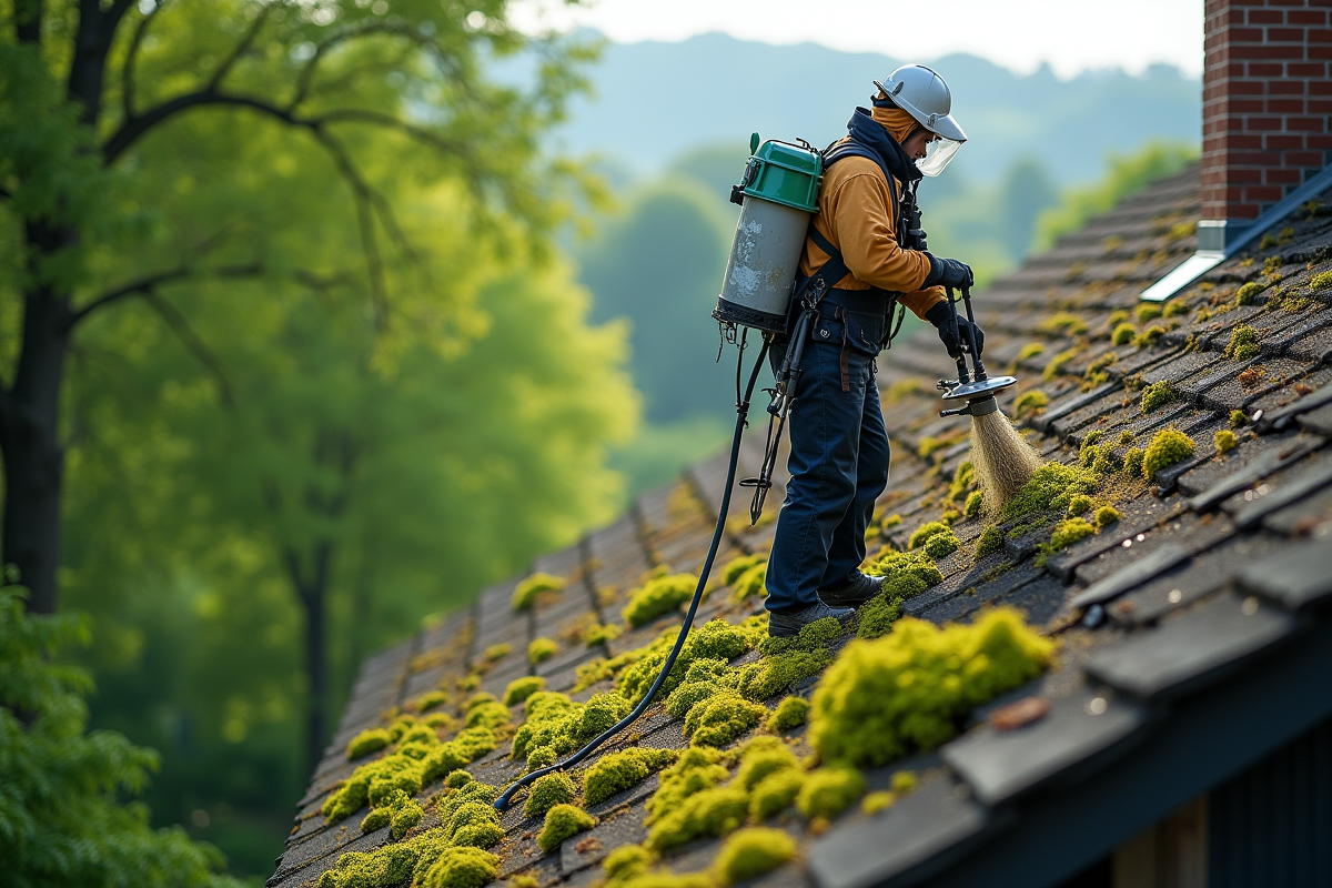Pour optimiser l’efficacité de l’anti-mousse, commencez par un nettoyage de toiture rigoureux. Une toiture propre permet au produit de mieux adhérer et de pénétrer plus profondément. Utilisez un nettoyeur à basse pression pour éliminer les saletés et les mousses existantes sans endommager les matériaux. Un nettoyage manuel peut aussi être effectué pour les zones difficiles d’accès.