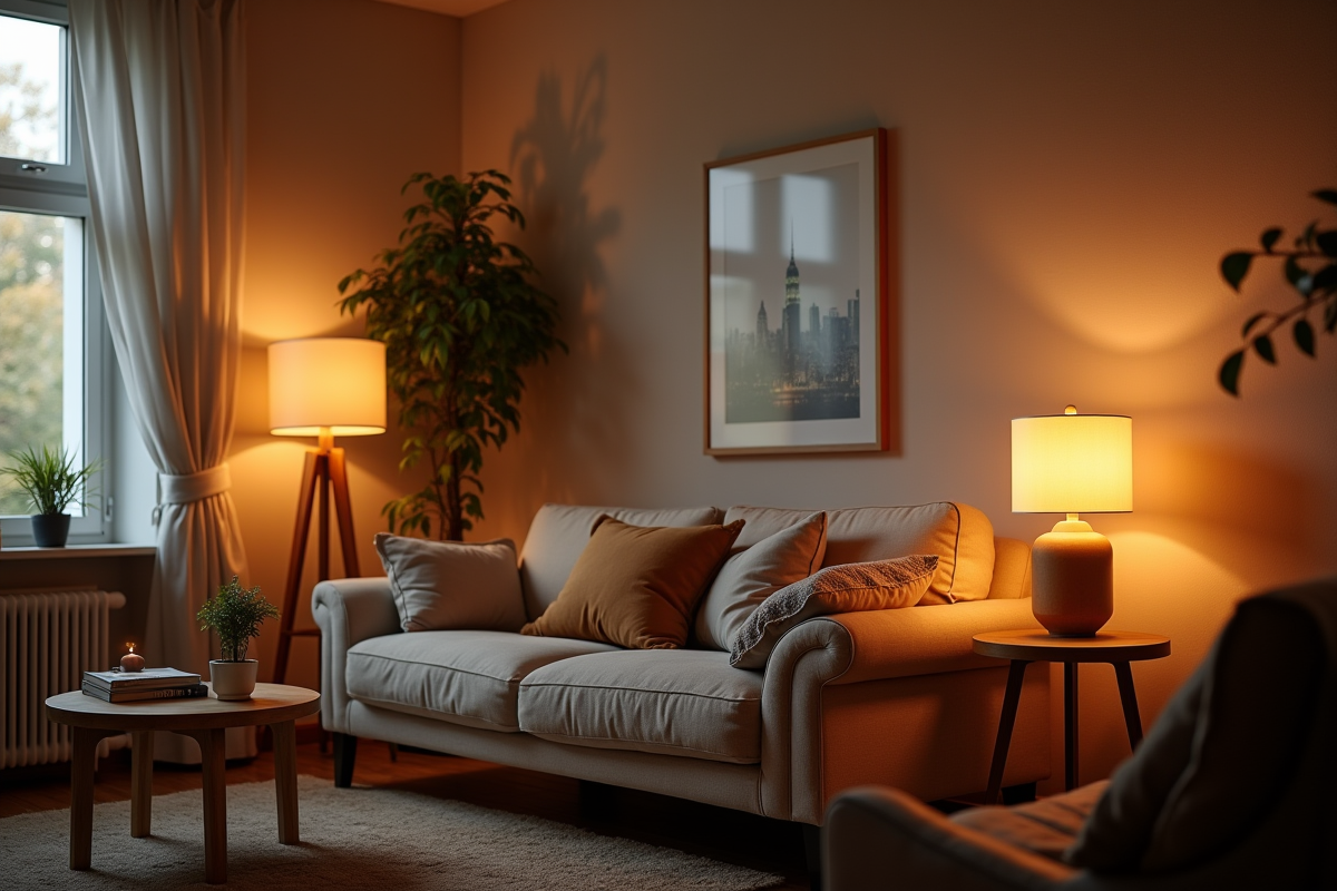 - Pièce à vivre : choisissez des ampoules LED qui savent trouver l’équilibre entre puissance et température de couleur, pour garder une ambiance chaleureuse et accueillante.