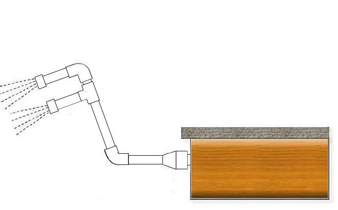 Il y a plusieurs façons d’aérer l’eau, que vous pouvez penser. Vous pouvez orienter les roues pour générer un petit tourbillon, mais l’effet est faible. Tu pourrais éclabousser toute la nuit… Mais la chose la plus utile est que faire une petite « fontaine » : avec un tuyau en PVC et quelques coudes, vous faites une sorte de girafe ; une extrémité vous le connectez à une roue, et de l’autre vous mettez un bouchon en PVC dans lequel vous faites de petits trous, comme si c’était la pomme de douche. Le coude inférieur peut être de 45 degrés de sorte qu’ils « branchent » l’eau la plus directe dans la piscine.