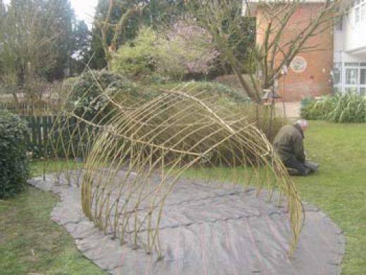 - Renforcez la structure avec les jeunes pousses de saule, placées en diagonale pour plus de stabilité.