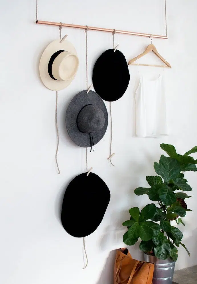 Tube en cuivre et caisses en bois — les matériaux parfaits récupèrent pour créer un rangement de bricolage pour votre chambre à coucher