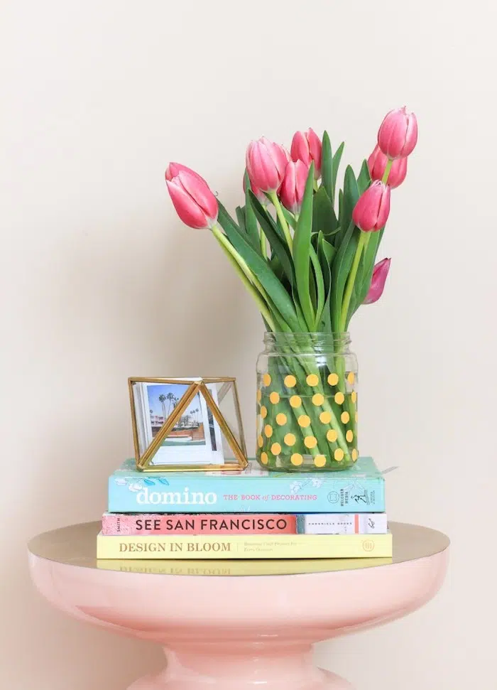 Décoration de bureau bricolage — pots en verre transformés en vases à fleurs et petits flacons pour stocker les fournitures de bureau