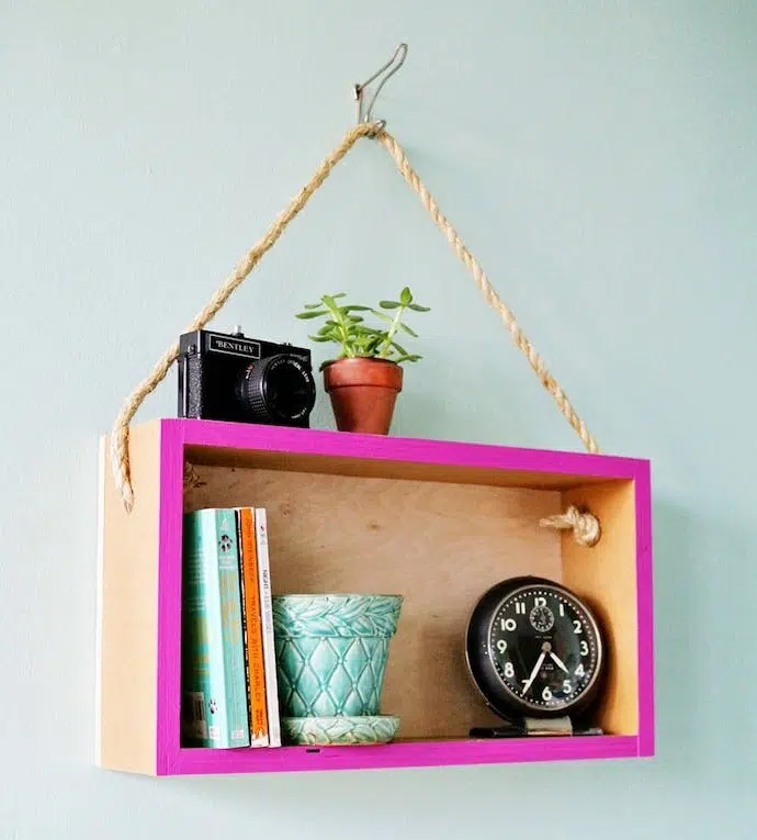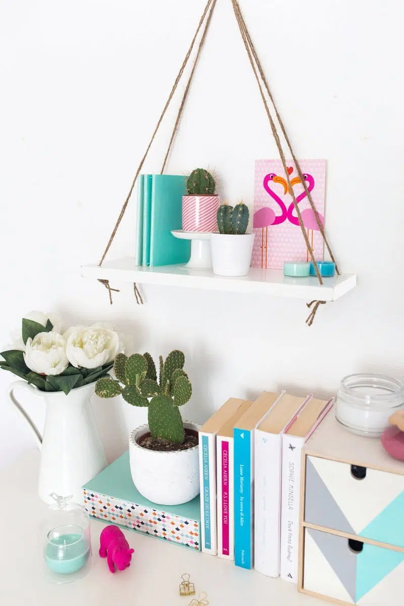 Une étagère en bois peint en blanc et corde. Comment décorer votre chambre à coucher avec l’aide d’un petit mobilier de bricolage charmant