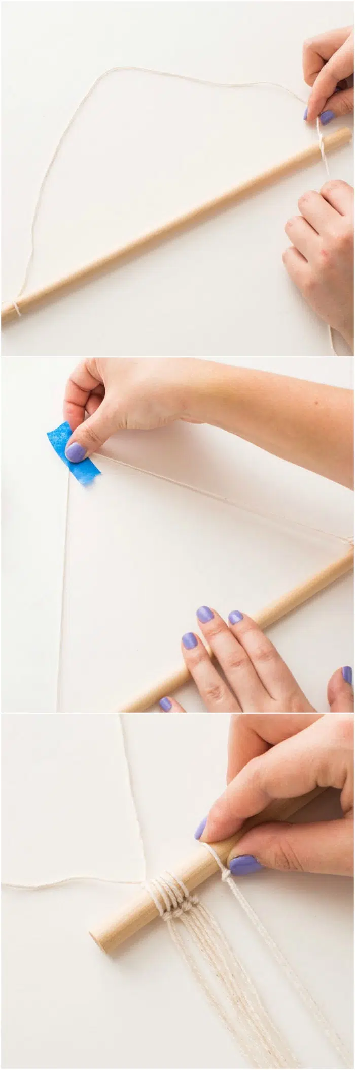 Les matériaux nécessaires pour réaliser ce projet de macramé. Bricolage bohème chambre esprit