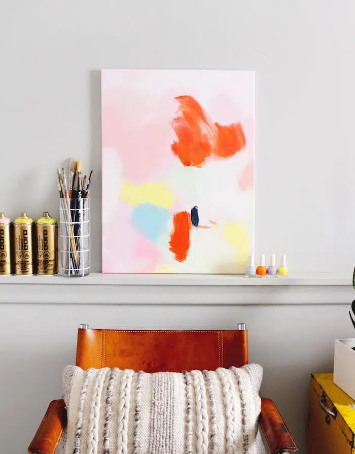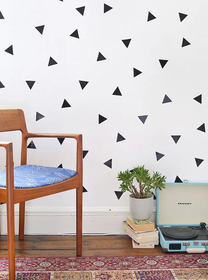 Cadre de peinture abstraite ou adhésifs de formes géométriques. Une belle réponse à la question comment décorer votre chambre
