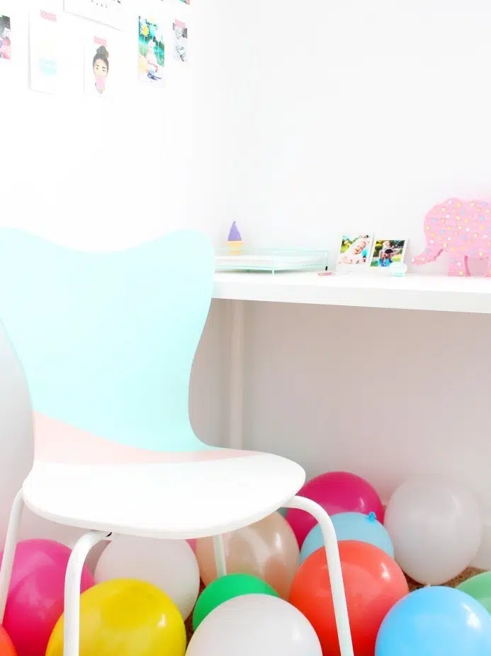 Une chaise personnalisée avec peinture rose pastel et bleu