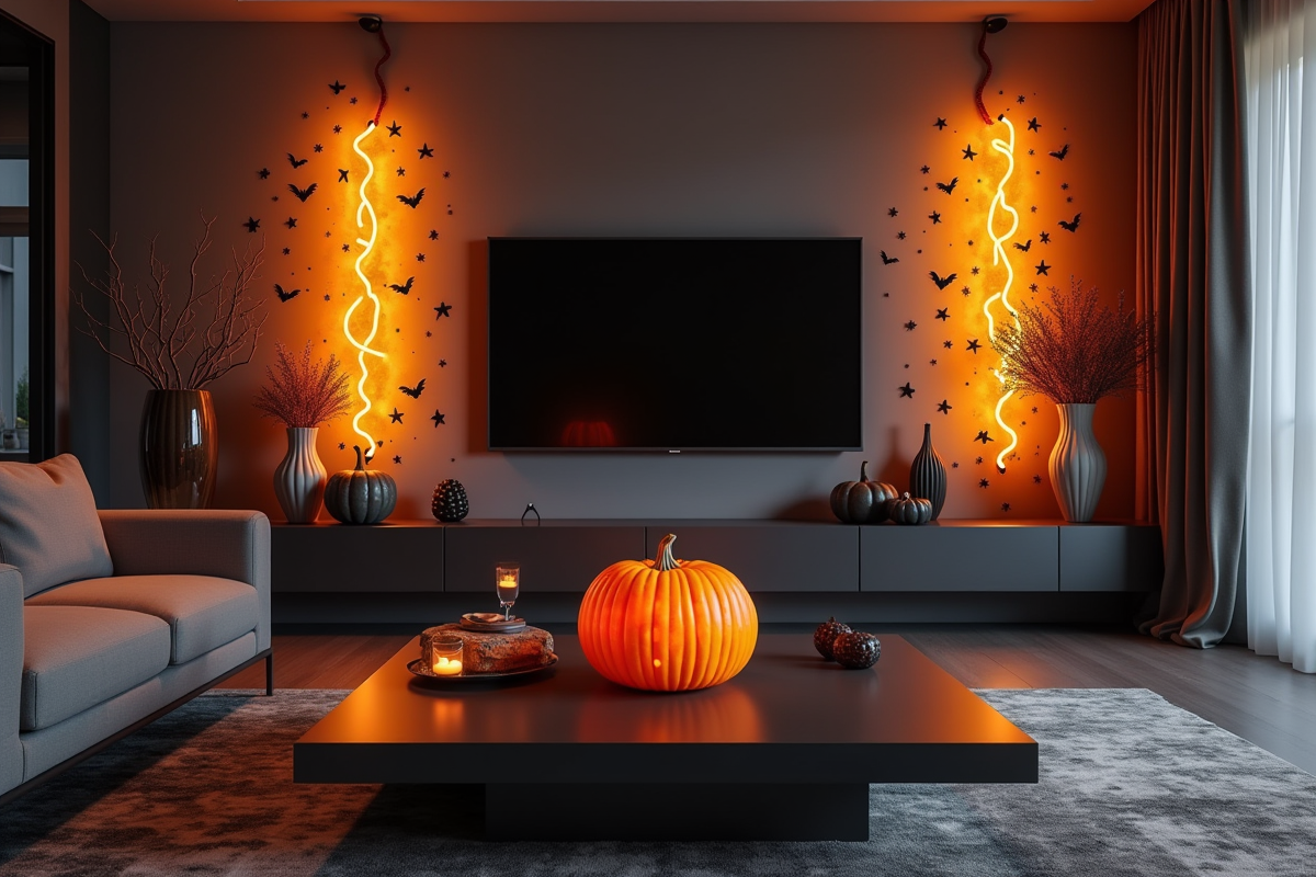 La décoration intérieure joue un rôle central pour créer une atmosphère effrayante. Transformez votre cheminée en un véritable autel de la peur, en y plaçant des citrouilles lumineuses équipées de lumières LED. Ces dernières créeront des jeux de lumières inquiétants et accentueront l’effet dramatique.