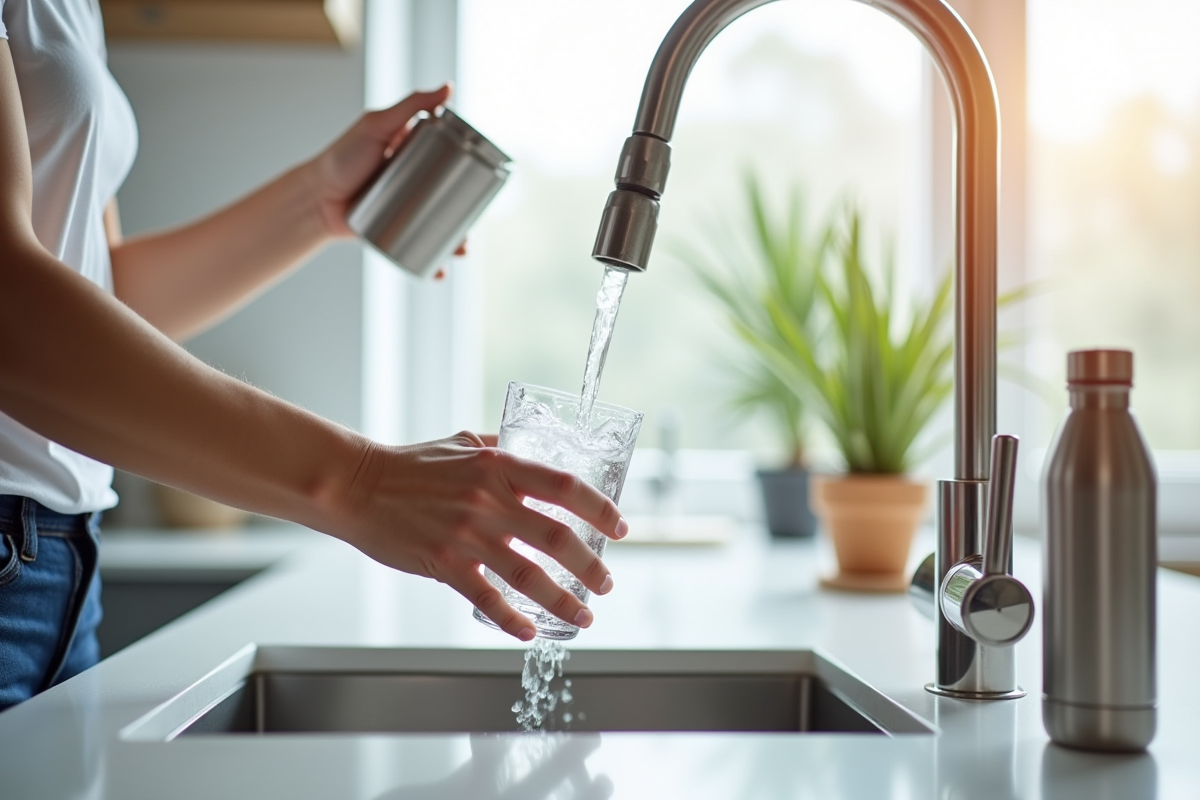- Les filtres à eau sur le robinet offrent une solution pratique pour une filtration continue.