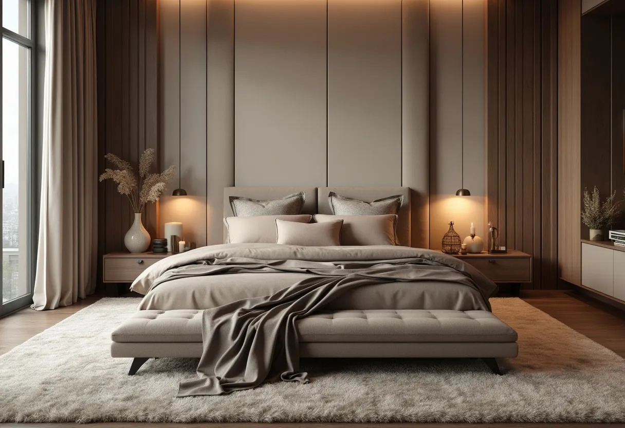 Pour la chambre, le taupe offre une atmosphère paisible et propice à la détente. Associez-le à des nuances de beige et de blanc pour un effet serein. Ajoutez des coussins et des plaids en matières douces comme le velours ou la laine pour un confort optimal.