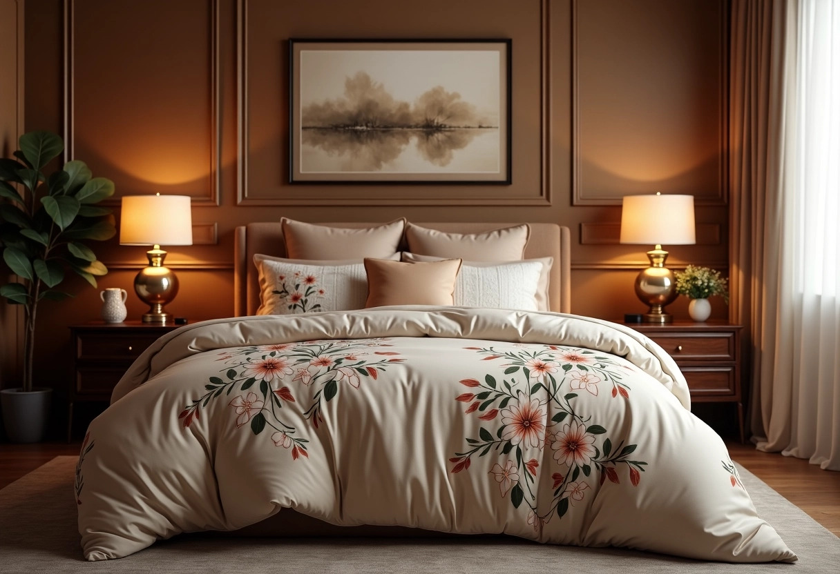 Les matières naturelles et écoresponsables gagnent en popularité. Le lin et le coton biologique se démarquent par leur confort et leur aspect authentique. L’accent est aussi mis sur des finitions soignées et des détails raffinés, apportant une touche d’élégance à la chambre à coucher.