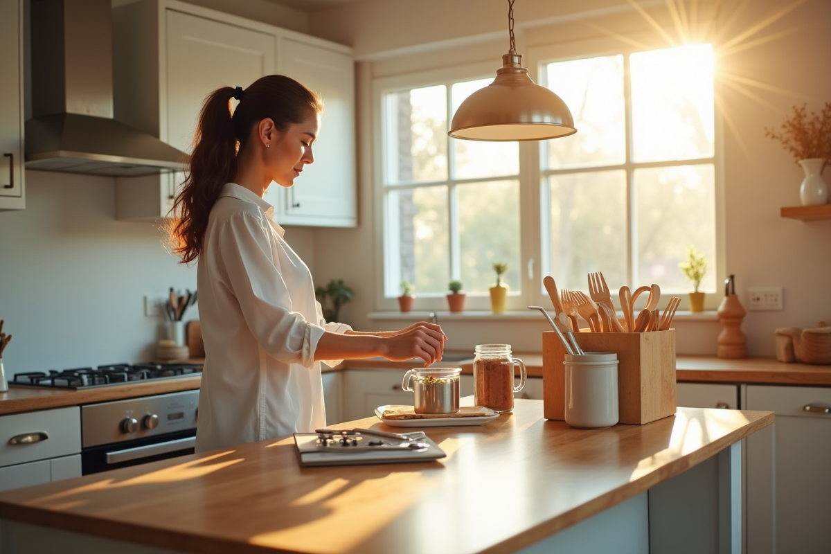 La cuisine est un espace où la propreté est primordiale. Videz et nettoyez les placards de fond en comble. Dégraissez les surfaces de cuisson et les hottes aspirantes. Pour les surfaces en inox, utilisez un mélange de vinaigre et d’eau pour un résultat éclatant.