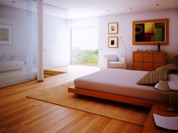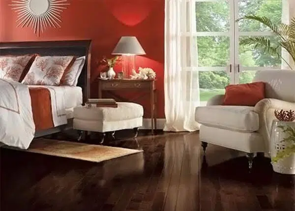 Une bonne option pour combiner parquet rougeâtre est d’utiliser des couleurs claires sur les murs. Il n’y a pas Il faut oublier que la couleur sombre du sol réduit l’espace et, si elle est combinée avec des couleurs sombres des murs, peut être écrasante.