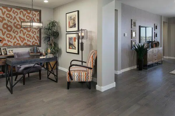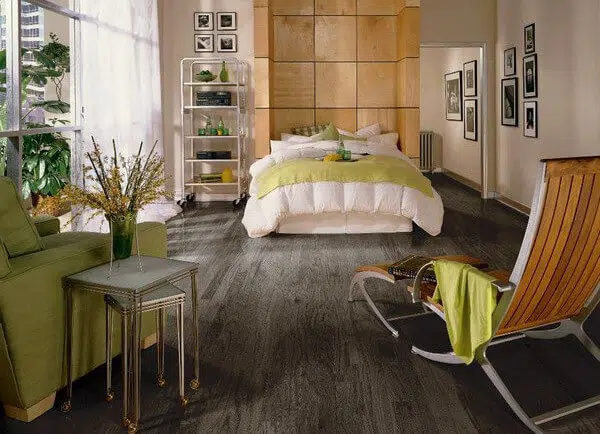 Le parquet gris peut être combiné avec des meubles sombres, mais il est essentiel d’incorporer dans la pièce un peu de couleur, de sorte que le décor ne s’avère pas déprimant. Et il est essentiel que cette couleur que vous choisissez ne soit pas combinée avec d’autres.