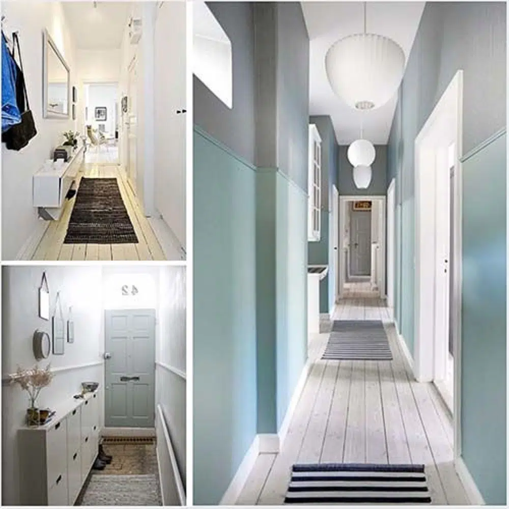 Vous pouvez l’associer avec du blanc et disposer des plantes vertes le long du couloir pour encore plus d’effet. Vous pouvez davantage vous distinguer en utilisant le violet, le framboise ou le prune associé avec du blanc pur.