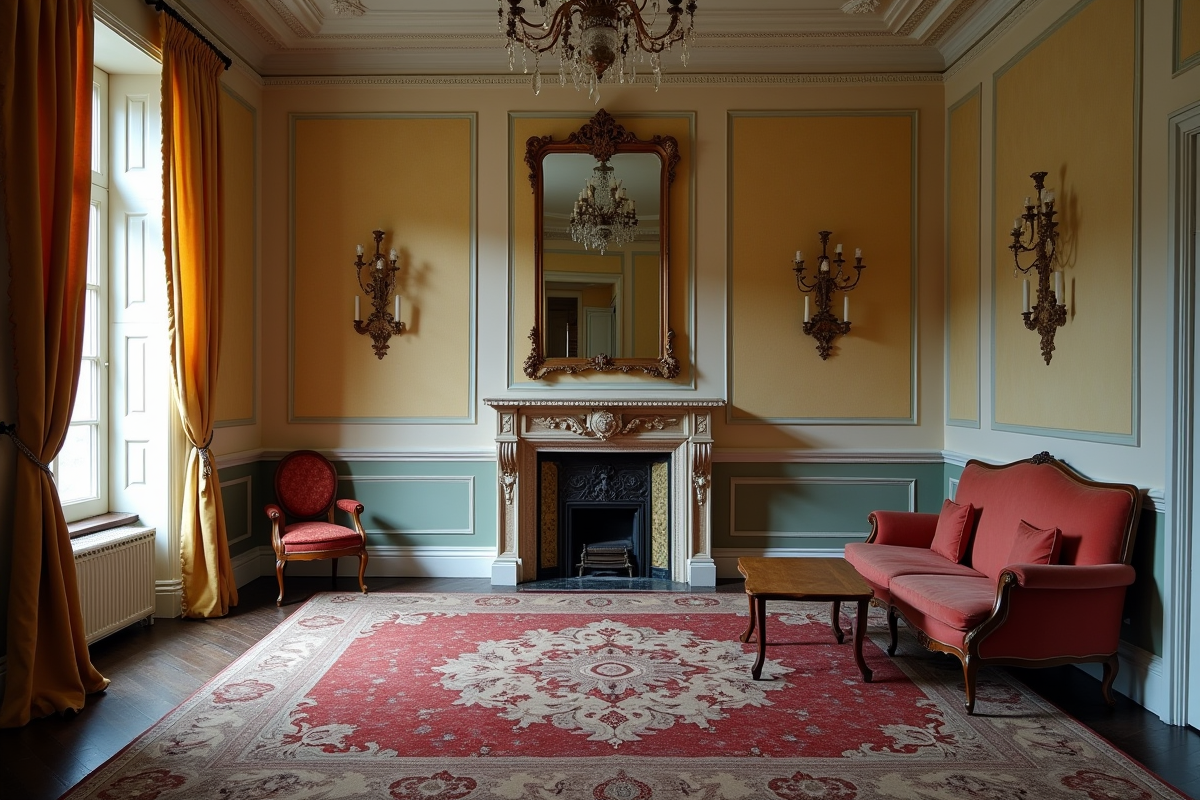 - Détails raffinés : moulures, corniches, cheminées en pierre ou en marbre, parquets élaborés, souvent en chevrons.