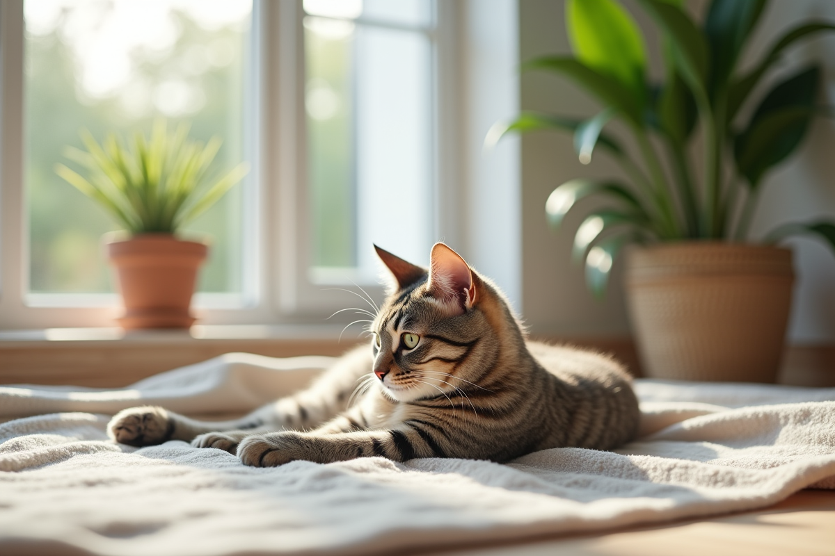 - Créez des espaces de détente avec des cachettes et un arbre à chat.